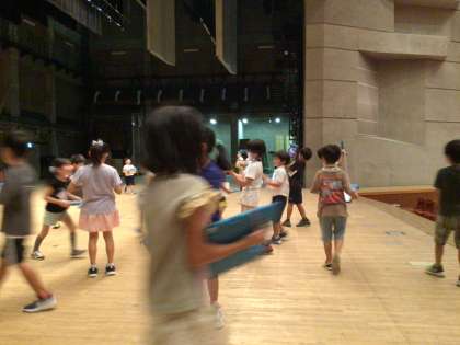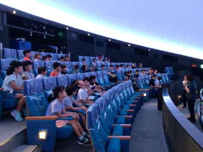 Aコースの子たちは、最初に産業文化センターに行きました。プラネタリウムで今夜の星空を見たり、科学体験館で遊ばせてもらったりしながら、施設の様子を見てきました。その後、市民文化会館の大ホールの見学をしました。舞台の裏から管理室にワープできる通路を見つけた子たちは大興奮。素敵なところをたくさん見つけることができました。