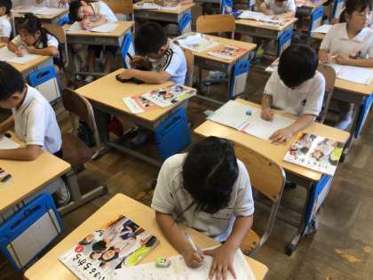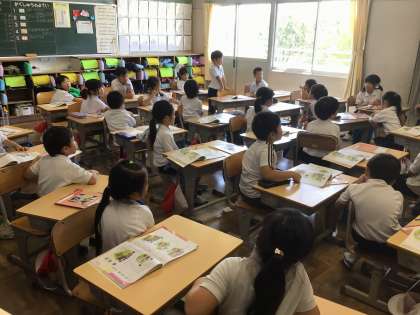 1年生は、道徳科の授業で「ひつじかいの こども」を読んで、学習課題「しょうじきでいると どうしていいのか」について話し合いました。ウソをついた子に対して、「ウソをつかなかったら、大人が助けてくれたかもしれないよ」などと、物語の内容を理解して感想をもちました。最後に、みんなが嫌な気持ちにならないためにどうしたらよいか考えました。「僕は、ウソは1回までだったら許してあげる」「私は、ウソをつかれたら嫌な気持ちになるから、1回でも許せない」など、自分の考えをしっかりと友達に伝えることができました。