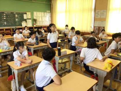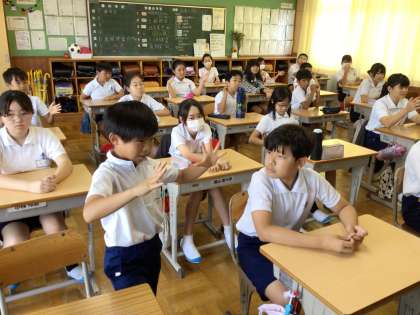 5年生は、「朝の会の対話」で折り紙で作ったドラゴンについて対話しました。学習机2個分の紙で折ったそうです。「とても時間がかかったけど、できあがった時は、とても達成感があった」という話がありました。
