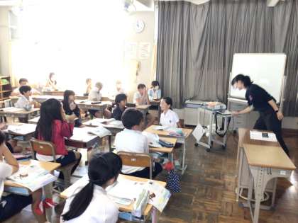 5年生は、道徳科の授業で日本の伝統と文化について学習しました。教科書の「太鼓調べ」について、和太鼓、ドラム、ティンパニ、アフリカに昔から伝わるジャンベなどから、どのような音が出るのか、感じたことを発表しました。ジャンベの音を聞いた際には、「音が低かった」「賑やかなイメージがした」「リズミカルだった」などの意見がありました。