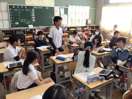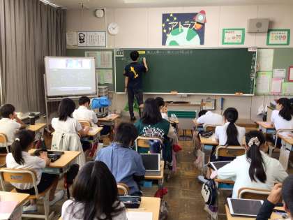 6年生は、図画工作科の授業で縄文土器について追究してきたことを伝え合いました。「貝殻で文様を作った土器がありました」「アクティブ・ラーニングツアーで足助に行った時に見た土器は、複雑な縄の文様がありました」「地域によって文様が同じところがありました」「渦巻文といった文様がありました」などの意見交換から、縄文土器には様々な文様があることが分かりました。