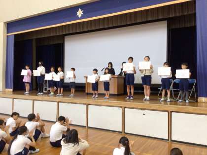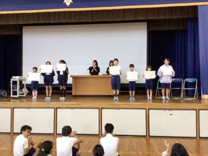 前期終業式の後には、夏休みに書いた詩や作文、感想文の表彰がありました。