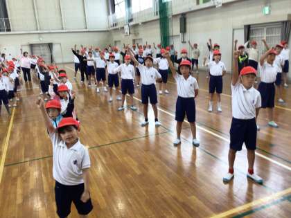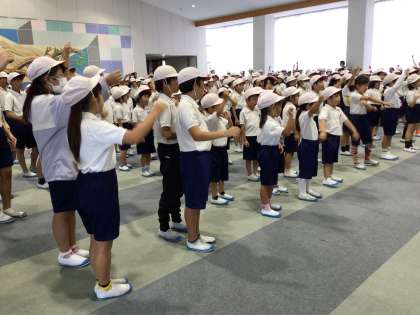 今日の縦割り活動の時間には、赤白に分かれて応援コールの練習会がありました。6年生の応援団長と応援団員の掛け声のもと、組が次第に団結していく感じが伝わってきました。ふれあいホール、体育館どちらの練習会場からも、割れんばかりの応援の声が響きました。運動会本番の応援の様子にぜひ注目してください。