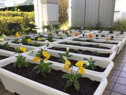 わらべっこの登下校や学校生活を見守っている花壇の花が、秋の花に変わりました。公務手さんたちが1株1株丁寧に整然と植えました。これからの成長が楽しみです。