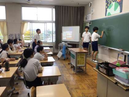 朝日丘中学校の先生が、「朝の会の対話」を見に来られました。子どもたち自身が進めている様子を見られて、「小学校でつけた力を中学校でさらに伸ばしていきたいです」と言われていました。これからも、小学校と中学校が連携して、子どもたちが成長できるようにしていきたいです。