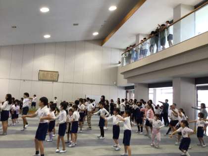 運動会の閉会式では、整理体操としてダンスを踊る予定をしています。今日の長放課には、有志が集まってダンスの練習をしました。盛り上げ隊の6年生がお手本を見せてくれたので、下学年の子たちも上手に踊ることができました。当日も盛り上がりましょう!