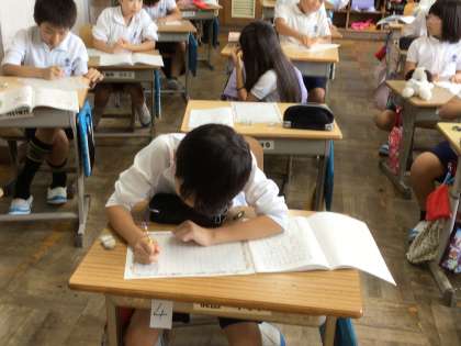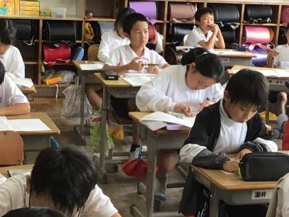 今日は、土曜日に行われる運動会の招待状を書いていました。下書きした文章を丁寧に清書し、案内図と一緒に封筒に入れていました。「お母さんに来てほしいな」「ばあばが楽しみにしてくれているんだ」と招待する相手のことを考えてみんな心を込めて書いていました。手紙の書き方と共に、相手を思いやる気持ちも養う授業になりました。