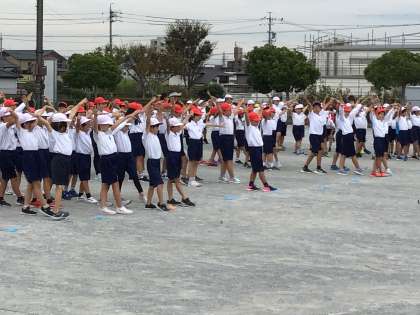 3、4年生は、運動会練習の最終確認をしました。「みこしdeサンバ」では、チームでどうしたらボールを落とさずに運べるかや、スムーズにボールを送るかなど、作戦を考えました。また、途中で踊るマツケンサンバは、キレッキレの動きで楽しみながら踊りました。「本番、お家の人に見てもらうのが楽しみ」「もっとリズムに乗って笑顔で踊りたい」と、とても意欲的になっています。本番がとても楽しみです。