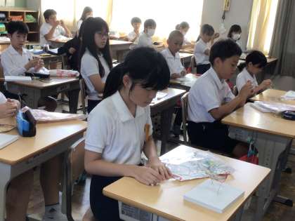 5年生が、色とりどりのワイヤーを使って、ワイヤーアートの作品作りをしていました。