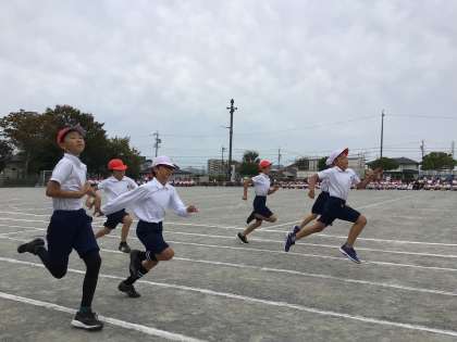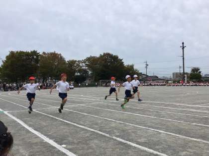 最初は、3・4年生の徒競走「Run Run Run!」です。何度も練習したので、思いっきり頑張れました。