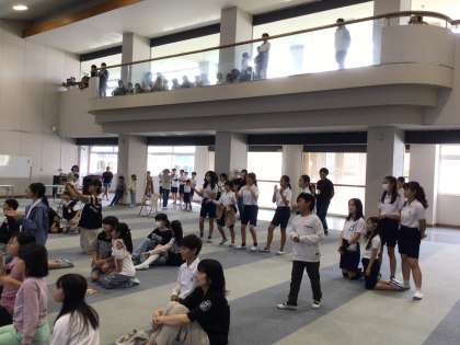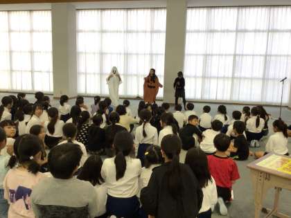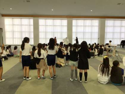 今日のわらべちゃんは、以前も発表した6年生が、息の合ったダンスを披露しました。ハロウィンの前日ということもあり、仮装して会場を盛り上げました。曲は「Bling-Bang-Bang-Born」と「Show(唱)」です。見ている子たちも一緒に踊って、楽しんでいました。