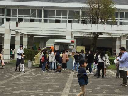今日は父母教師会主催の「楽しめマルシェ in 童子山(童子山小バザー)」が開催されました。キッチンカーとハンドメイドマルシェなどが体育館と中庭などに出店しました。天気が心配されましたが、たくさんの人が来校してくださいました。