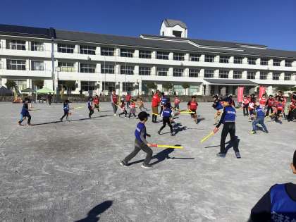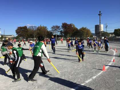 秋の心地よい気候の中、童子山小の運動場では、子ども会のイベントが行われました。相手を大切に思い、正々堂々と足につけた紙風船を叩き合う「サムライ合戦」。わらべっこたちが、本気で全力で戦い、楽しい時間を過ごしていました。明日からの学校も元気にスタートできますね。