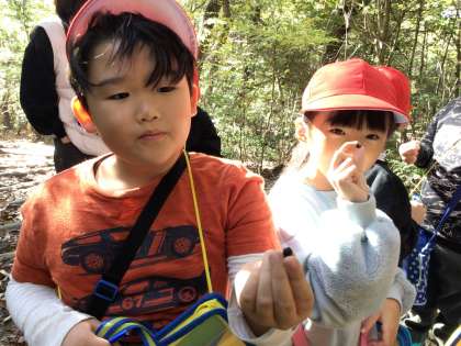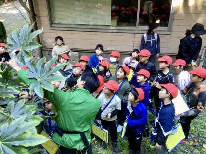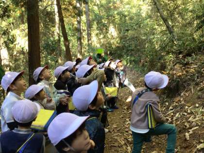 2年生が、3日(火)・4日(水)の二日間に分かれて、自然観察の森に校外学習に出かけました。職員の方から、自然観察の森がどのような施設なのか、どんな危険な生き物が住んでいるかなどの講習を受けた後、実際に森に出かけました。森の中で見つけたものでビンゴゲームをしながら、生き物を観察しました。「鳥の声が聞こえたよ」「松ぼっくりをムササビがかじったものが、エビフライみたいだったよ」と、それぞれが自分のお気に入りを見つけ、自然を身近に感じることができました。