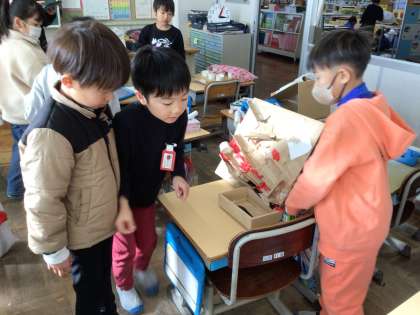 教室に入ると、「どんぐりスイッチ、面白いんだよ!」「このコマこんなに回るんだよ、見て見て!」と、自分のおもちゃを得意そうに見せてくれる子がたくさんいました。