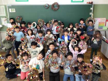 また、生活科で作ったリースを見せてくれる学級もありました。自分で育てたアサガオとサツマイモのツルを使って、とっても大きなリースができました。今週持ち帰りますので、ぜひお家で飾ってください。