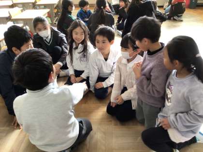 チームで聖徳太子を決め、みんなでお題のものを言い、それを当てる「聖徳太子ゲーム」を行っている班がありました。「みんなの言ったものを聞き分けるのが難しくておもしろかった」「6年生のお姉さんがヒントをくれたので、当てることができて嬉しかった」などの感想がありました。