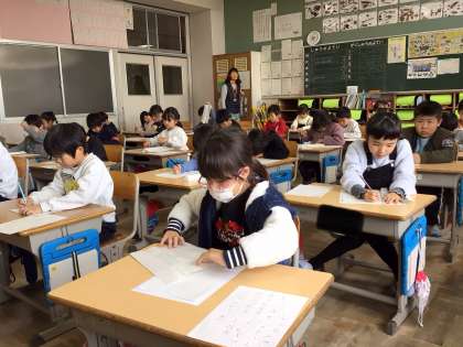 1年生にとっては、初めての書き初め大会です。お手本をよく見て、一文字一文字丁寧に書いていました。今までの練習の成果は発揮できたでしょうか。