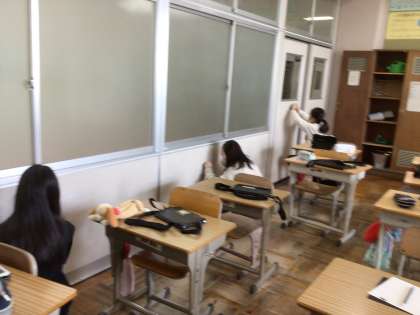 5年生が家庭科の授業で、汚れにあった掃除の仕方を考えて掃除をしました。