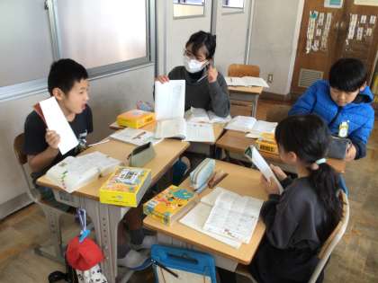 4年生は、国語の授業で国語辞典を使って調べる学習を行いました。『生で食べる』『生で聞く』『生乾き』の『生』の意味について、辞書を使って調べました。調べた内容を友達に伝えたり、調べてもよく分からなかった点を友達に聞いたりしながら『生』の意味を言い換えて理解しました。友達の考えを聞いて、「なるほど」「確かに」「そっか」「そういうことね」などの声が多く聞こえ、『生』の意味を深く理解する様子がありました。最後に、『生』を使った文章を考えることを通して、理解の定着を図りました。