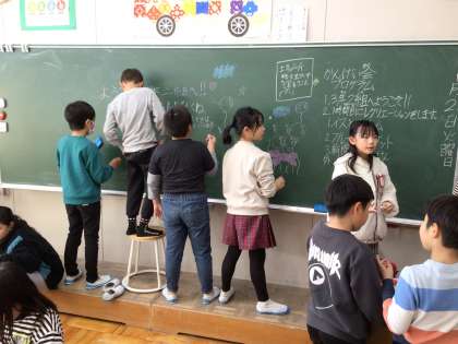 3年生は、転入生の歓迎会の準備をしました。風船や折り紙で教室の飾り付けを行い、様々なレクリエーションの計画を練っていました。椅子取りゲーム、フルーツバスケット、新聞紙ジャンケンなど、誰もが楽しめるような企画を考えました。「早くクラスになじんでもらえるといいな」「童子山小学校は安心して生活できるところだと知ってもらいたい」など、気持ちのこもった準備をしていました。