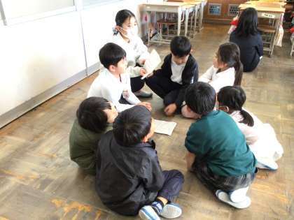 今日は、縦割り活動で5年生が中心として取り組んだ初めての日でした。まずは、仲良くなるために連想ゲームを行いました。それぞれの班に5年生が入り、ゲームをスムーズに進めていました。