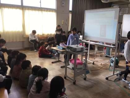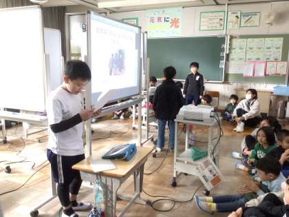 2年生が明日の学習発表会に向けて、1年生を相手に発表の練習をしていました。