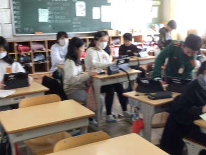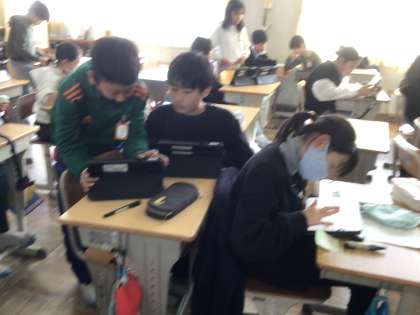 プレゼンが完成した子は友達同士で発表を聞き合い、よりよい発表になるように工夫をしていました。