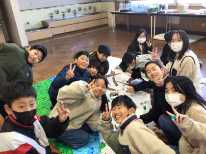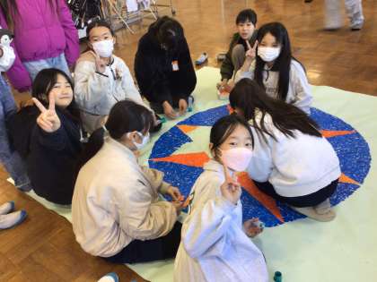 5年生のワークスペースがにぎやかだったので、寄って行くと子どもたちが壁画作りをしていました。「6年生を送る会」の飾りにするようです。みんなで、お祝いの気持ちを込めた温かいちぎり絵を作っていました。完成が楽しみです。