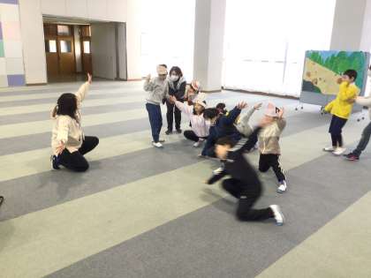 山あす1階チームは、学習発表会の練習を行いました。その中で披露するダンスの練習で先生の踊りに合わせながら細かな点をチェックし、一生懸命練習しました。「僕は、前に出る癖があるから、そこを気を付けたい」「私は、みんなと手拍子を合わせるところを頑張る」など、一人一人課題をもって意欲的に練習しています。フィナーレで全員が集合する姿は、とてもかっこいいです!ぜひ、当日を楽しみにしてください。