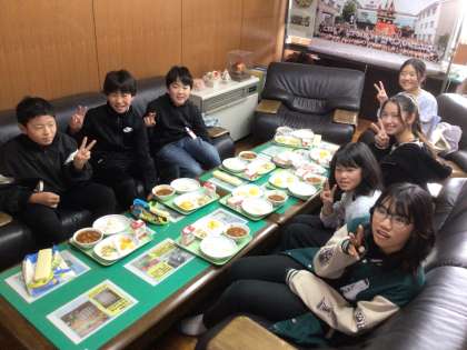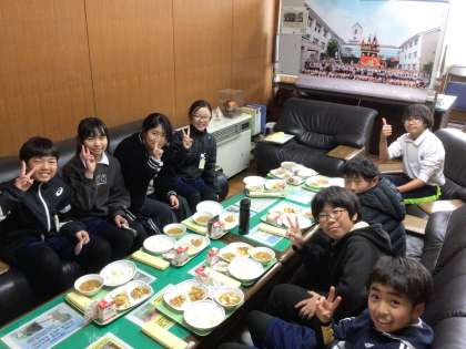 6年生と校長先生の会食の様子です。「校長先生が食べる暇がないくらいおしゃべりしよう」と6年生の子どもたちが意気込んで校長室に来てくれますが、「ぼくたちがしゃべりすぎて、食べる時間がなくなっちゃったよ」と言いながら食べている姿をよく見かけます。明るい6年生のおかげで、童子山小学校も笑いが絶えません。