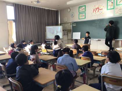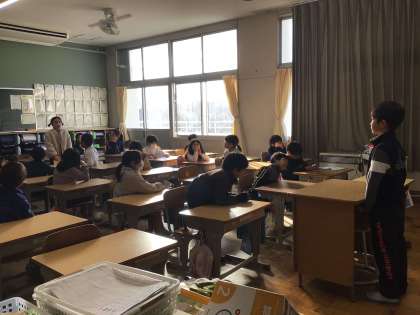 朝の対話、今日のテーマはペットでした。学習用タブレットで撮ってきたベットの写真を提示しながら、お話を始めていました。飼っている犬の名前の由来や、エサはどんなものを食べているのかなど、たくさんのお尋ねが時間いっぱい行われていました。