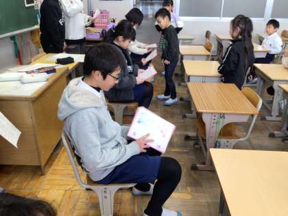 今日のたてわり活動は、5年生が中心となり、6年生に「6年生を送る会」の招待状を渡しました。招待状には、「キャンプの時にお守りを作ってくれてありがとう。◯◯さんのおかげで安心してキャンプに行けました」など、心温まる在校生からのメッセージが添えられていました。招待状をもらった6年生は、みんな自然と笑顔になっていました。とても素敵な時間になりました。