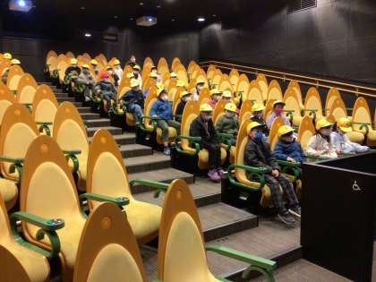 1年生は、校外学習で豊田市交通安全学習センターに行きました。まずは、シアタールームで交通安全クイズに答えました。「信号のある横断歩道を渡るときに気をつけることは?」「歩道のない道路を歩くとき、どこを歩くのが正しい?」などの質問に答えながら、交通ルールを学びました。「横断歩道を渡るときは、信号だけでなく、曲がってくる車にも気をつけたい」「車に気をつけて道路の右側を歩くようにしたい」などの感想をもちました。