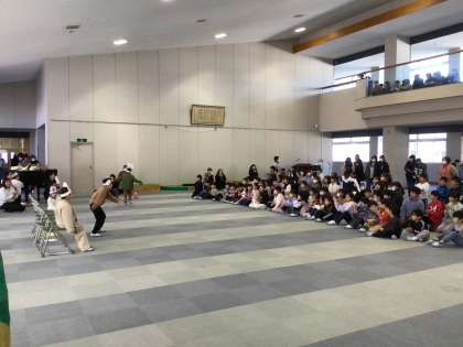 山あす1階チームは、2時間目に、保護者の方に向けて、「お弁当バス」と「桃太郎」の劇を披露しました。劇の中で、縄跳びを披露したり、描いた絵を紹介したり、音読を披露したり、それぞれができるようになったことも発表しました。また、長放課には「わらべちゃん」として、全校のみんなにも発表しました。子どもたちの成長を感じられる温かい時間になりました。