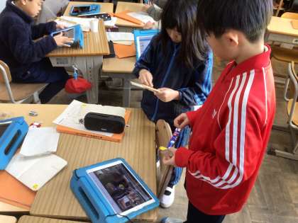 3年生は、来週、学習発表会を予定しています。これまで、総合的な学習の時間に探求してきた「福祉」について、グループで発表します。福祉といっても、それぞれテーマが異なり、幅広い内容になっています。自分たちで作った物の使い方を動画撮影している班もありました。楽しみにしていてください。