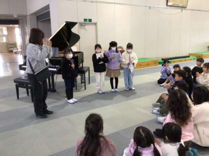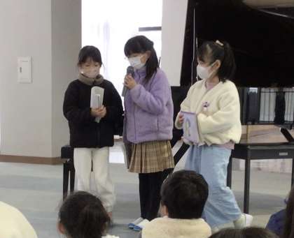 今日の「わらべちゃん」は、2年生によるピアノの演奏とクイズでした。ピアノの演奏をした子は、目の調子がわるかったため「自信がない」と言っていましたが、とても素敵な演奏を聞かせてくれました。また、クイズを担当してくれた子達は、たくさんのクイズを用意してみんなを楽しませてくれました。「おならは何歳でしょうか」の答えがわかるでしょうか?