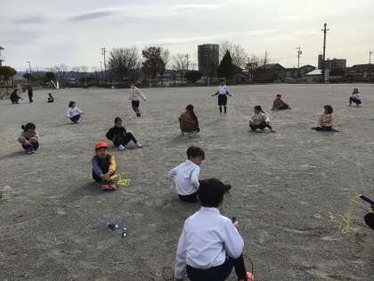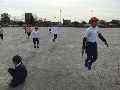 2年生が、体育の縄跳びの学習で、前跳びや後ろ跳びに挑戦していました。中には「悔しい!もっと跳べる!」と言いながら、歯を食いしばって頑張っている子もいました。学級みんなで大縄をする時間になると、「いーま、いーま」「がんばれ、がんばれ」と温かい応援の合唱が始まり、みんなで力を合わせて記録を伸ばそうとしていました。寒い中でしたが、子どもたちの頑張る姿を見て、心が温かくなりました。