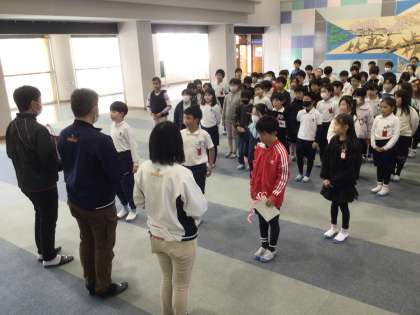 5時間目に、3年生が交流してきた日本介護サービスの代表の方が来校され、利用者さんが作ってくださったしおりをプレゼントしてくれました。子どもたちは1年を通して、福祉について学習してきました。「最初は福祉がわからなかったけど、普段の暮らしを幸せに、と分かってからは、それを想像しながら学習をしてきました。日介さんで実際に体験できて本当のことがわかりました」などと感想を伝えていました。日介さんからは「みんなのがんばる姿を見て、おじいちゃん、おばあちゃんたちも、元気をもらい、笑顔になれました。これからも応援しています」とお言葉をいただきました。子どもたちは、「これからも自分たちにできることを見つけ、みんなに幸せを届けていきたい」と思いを強くしていました。