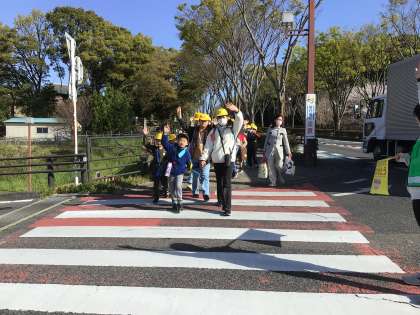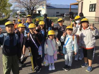 今日から、1年生も一緒の登下校が始まりました。お世話係のお兄さんやお姉さんは、家までお迎えに行き、集合場所まで案内してくれました。1年生は、大きなランドセルを背負って頑張って歩いて学校に来てくれました。今日から6年間、安全に気をつけながら登校してくださいね。