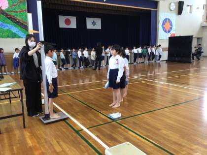 今日から身体測定が始まりました。身長、体重、視力検査を行います。