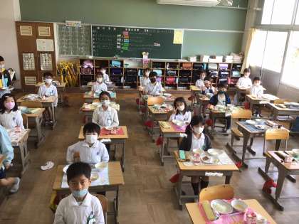 2年生の教室でも、給食のルールを確認してから給食の準備が始まりました。さすが2年生は、細かいルールもわかっているので、準備がスムーズです。手洗いもとてもしっかりできました。静かに待つこともできます。たくさん食べてくださいね。