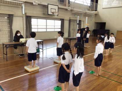 1年生は2時間目に身体測定を行いました。廊下に並ぶところからビシッとできたので、迷子にならずに体育館まで移動できました。「しゃべりたくなったときには、がまんエネルギーを貯めるといいよ」と先生に言われたので、どの子も「がまんエネルギー」をたくさん貯めようと頑張っていました。みんなが静かにしてくれたので、素早く正確に測定ができましたよ。1年生のみんな、協力してくれてありがとう!