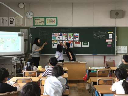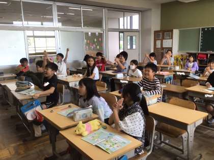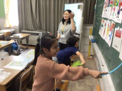 4年生の外国語活動では、いろいろな国の挨拶を勉強していました。先生の発音を聞いて、どの国か当てるゲームでは、みんな大興奮。まるで運動会のときのように、応援にも熱が入っていました。「アッサーラム アライクム」はどこの国の挨拶かわかったでしょうか?