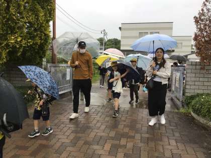 今日は、雨の中、多くの保護者の方が参加してくださり、お家の方と一緒に下校する子どもたちは、とても嬉しそうでした。ご協力に感謝いたします。お気づきの点はFormsでお知らせいただくことになっていますので、よろしくお願いいたします。