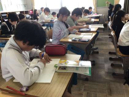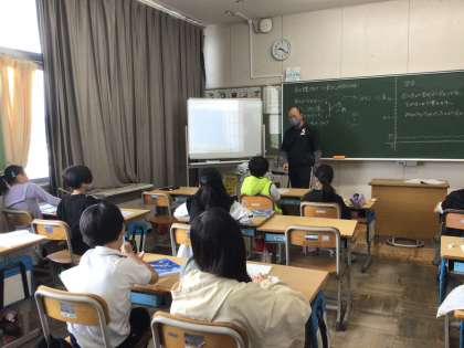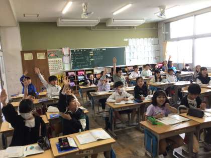 4年生の算数科の学習では、折れ線グラフのかき方を勉強していました。同じグラフでも、1目盛りの表す大きさを大きくすると、変化が分かりやすいことに気付きました。演習の時間になると、「1年生から4年生までの身長の変化をノートに折れ線グラフで表すにはどうしたらいいか」をみんなで考えていました。「うーん、ノートをはみ出しちゃうなぁ」「1めもりはいくつにしたらいいのかなぁ」頭をいっぱい使ってグラフ作りに取り組んでいました。