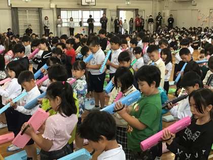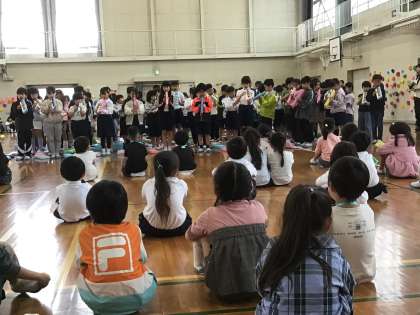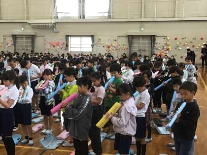 3年生からは鍵盤ハーモニカの演奏のプレゼントがありました。息のあった演奏ときびきびした動きで、3年生のすごさを全校に見せつけました。1年生は、これから始まる音楽の授業がとても楽しみになったようです。
