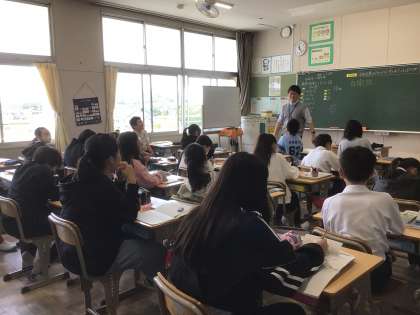 今日は、隣の学級担任の先生と社会科「平和主義について」の授業をしていました。黒板に、「1945,8,6」「8,9」「8,15」と数字が書かれ、先生から「何の数字でしょうか?」と聞かれると「3の倍数?」「違うよ」「え〜、わかんない」などの会話が聞かれました。これから日本の歴史をしっかりと学習していってくださいね。