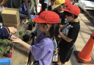 学校に戻ったあと、早速植木鉢に植えていきます。元気で美味しい野菜がたくさんできるとよいですね。