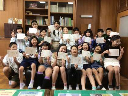 第一号は、5年生の17人です。高学年になり、学校のために自分たちができることをよく考えて行動できたところ認められました。これからも、学校のリーダーを目指して頑張ってほしいです。